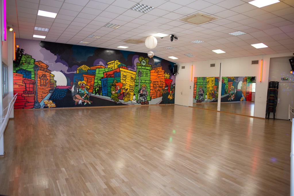 Nos cours se tiennent dans 2 salles, respectivement de 150m2 et 80m². Ces salles sont climatisées, équipées de plancher de danse et de miroirs.